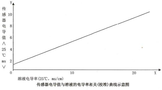多孔隙將被土壤溶液所充滿,土壤溶液中的鹽分離子測定時,儀器所顯示的用鉑網電極測得的電導值與土壤電導率之間的關系曲線,在一定范圍內,近似一條直線,可用公式Y=BX+A表示。式中A稱為截距,B稱為斜率,它們是決定傳感器特性的兩個常數。